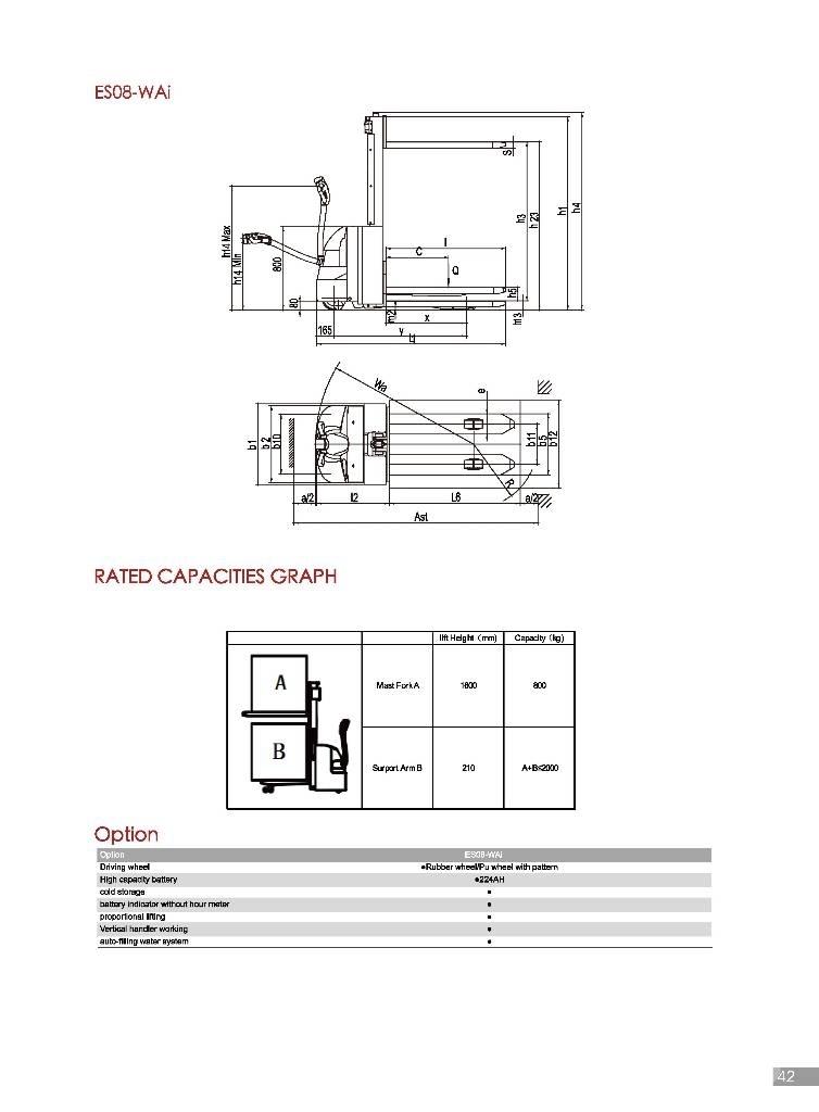 ES08-WAi can bring pallets to ergonomical working height and carry two pallets at a time. With a powerful AC system, high strenght vertical gearbox and safe hydraulic system design, this truck will help to improve the productivity and make your work very easy and more productive.