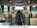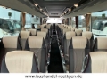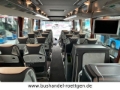Standheizung, Holzfußbodenoptik, KlimaAnlage, Tische, Vorhänge, Gepäckablagen, Gepäcknetze, Düsenbelüftung, Leselampen, Doppelverglasung, Fußrasten, Küche, Kühlschrank, Kaffeemaschine, Mittel-WC, Kopf-Ledereinsätze, Reiseleitermikrofon, Fahrermikrofon