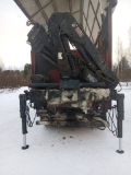 Hiab 144-4 radio-ohjattu kappaletavaranosturi suoraan käytöstä. Ei tukijalkapainevalvontaa. Kääntyvät ja leviävät tukijalat.