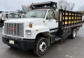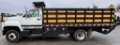 1995 GMC C6000 Stake Truck - 6.6L Cat 3116 diesel engine, 256,703 miles, automatic transmission, GVW 25,500 lbs, medium duty/Class 6, 168" WB, 15' bed, roof-mounted Trafcon arrow board, electric lift-gate, Financing available, Video by request[REF: 45]