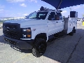 2022 Chevrolet Silverado 5500 HD Crew Cab, 4x4 Mechanics truck!  Powertrain: Duramax 6.6L V8 Turbodiesel, 10-Speed Automatic Allison transmission, Autotrac 2-speed transfer case  Capability: 19500 GVWR, Payload plus upgrade, max tow package, Manual locking Hubs, PTO provision, snowplow prep package. Ready for any challenge.  Comfort & Convenience: A/C, tilt wheel, and an easy-clean vinyl floor, Power windows/locks, heated telescoping mirrors, and remote start, Bluetooth technology, 4G LTE Wifi capable Cruise Control, Upfitter switches Triple-sealed doors for minimal road noise.  Safety Features: Anti-lock brakes, backup sensors, and durable skid plates.  Mechanics Body: STI 2250 Body  -GVWR: 23,000 LBS (10432 KG)  -11Ft Bed Length, 96†max cabinets width, 98.5†overall body width, 50†overall cabinet height, 60†raised Oxygen/Acetylene cabinet, 31†deck side height, 17†workbench with bumper storage with vice mount.  -150 Ft of Cubic Storage!  -Pressurized compartment, adjustable shelving/dividers.  -Rollout drawers capable of 400 LBS per drawer  Crane: Tiger Crane 6542  -21’ Hydraulic reach  -6,500 LBS of lift capacity  -400 Degree rotation  -Hex boom with low pro Jib Head with boom tip lighting.  -Wireless remote, digital display, overload protection.  Hydraulic outriggers.  Welder: Miller Bobcat Air Pak  -3 in 1 compressor/welder/generator  -30 CFM of continuous air pressure  -12/24 v  -6,500-watt generator  -Welding capability stick, DC TIG, and MIG  -23 HP, with a 7-gal tank  located in Texas, nationwide shipping available  72,443 miles  5yr/100,000mile Chevrolet Factory Powertrain and Engine Warranty
